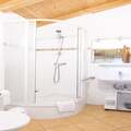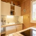 The 60 m² vacation apartment can accommodate 4 to 6 people. The vacation apartment for up to 6 people has two bedrooms with a double bed and bunk beds. The bathroom in the entrance hall is equipped with a shower and toilet (hair dryer available). There is also a separate guest toilet. The living/dining area with a wood-burning stove is furnished with a cozy sitting area (with cable TV) and a pull-out couch for 2 people. From there, you have access to the adjoining terrace. The kitchenette is equipped with cutlery and crockery, a glass ceramic stove (4 hotplates), a refrigerator with freezer compartment, and a dishwasher, as well as a filter coffee machine, a toaster, and a kettle.