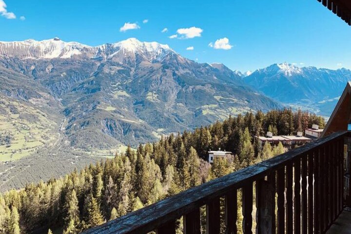 This cozy 2-room apartment, ideal for up to 5 guests, is situated on the 14th floor of a building with an elevator. The apartment features a comfortable living room with a 2-seater convertible sofa (160 cm mattress), flat-screen TV, and access to a corner balcony offering stunning views of the valley. The bedroom includes a double bed and a child-sized bunk bed, with plenty of storage space. The apartment is non-smoking and strictly pet-free, ensuring a clean and comfortable stay for all guests.