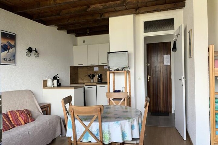 Located in Pra-Loup 1600, this apartment is situated on the slopes, approximately 100m from the shopping mall. This prime location offers convenient access to skiing and shopping amenities. The apartment is on the 3rd floor of a building with an elevator and offers a north-facing balcony with valley views.
