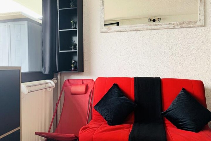 This charming studio apartment, located in a building with an elevator, offers a comfortable stay for up to 4 people. It features a mountain area with two bunk beds and a cozy living room with a double convertible sofa, an HD TV, and a Playstation 3 for entertainment. The apartment is non-smoking and includes electric shutters for added convenience. A deposit of €260 is required upon arrival.