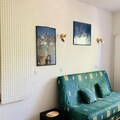 This cozy studio apartment, located on the first floor of a building without an elevator, is perfect for a couple or solo traveler, offering a comfortable stay in a 23m² space. It features a living area with a sofa bed, flat-screen TV, and ample storage, including a cupboard in the entrance corridor. The apartment is non-smoking and pets are not allowed, ensuring a clean and comfortable environment for all guests. A security deposit is required upon arrival.