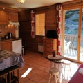 The well-equipped kitchen includes a ceramic hob, a combination oven/microwave, a fridge/freezer, a dishwasher, and essential appliances such as a coffee maker, kettle, and toaster. The bathroom features a bathtub and toilet. For your convenience, an individual ski box is also included, ensuring your ski gear is safely stored during your stay.