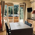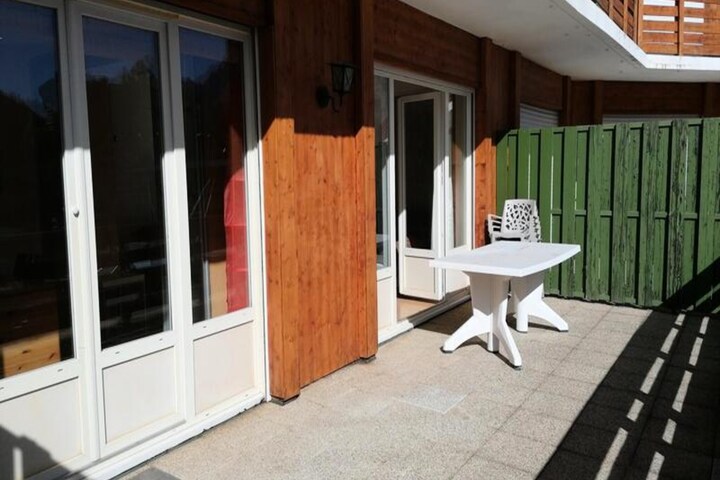 This spacious and bright 47m² apartment is perfect for a family or group of up to 6 people. It features a cozy living room with a single sofa and a 2-seater convertible sofa, along with a flat-screen TV for entertainment. The bedroom includes a bunk bed and a double bed on the mezzanine, providing ample sleeping space. The apartment is non-smoking and pets are strictly prohibited. A deposit of €260 is required, and heating is included. For added convenience, a garage space is available for rent at €80 per week.