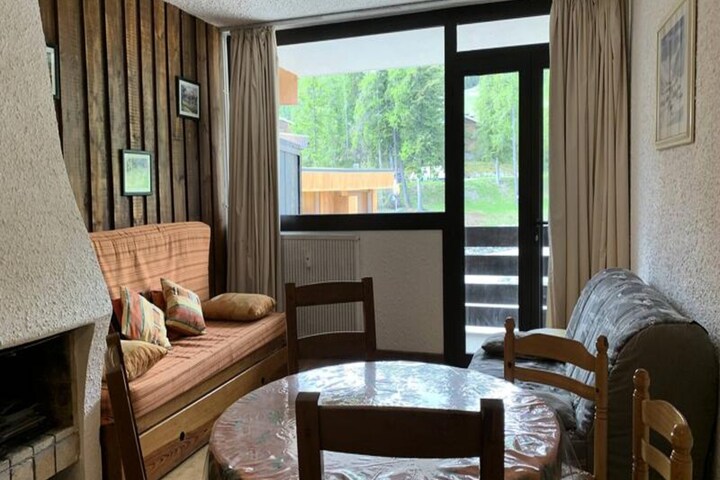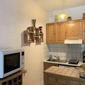 Located on the second floor with elevator access, this south-facing studio offers a balcony with views of the square, shopping mall, and slopes. The living room is bright and features an HD TV and cupboard. The kitchen area is equipped with two ceramic hobs, a hood, microwave, refrigerator, and dishwasher, and features attractive wooden furniture. There is a bathroom with a bathtub and a separate WC. A ski box is located on level -1. A deposit is required. Heating is included.