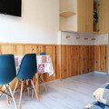 This cozy studio apartment offers a comfortable retreat for up to 4 guests, with 24 m² of well-designed space. The entrance features two bunk beds, while the living room boasts a double convertible sofa, flat-screen TV, and dining area. The apartment is strictly non-smoking and does not allow pets, ensuring a clean and peaceful environment. An individual ski box is provided for your convenience, and the apartment is equipped with heating and hot water.