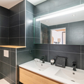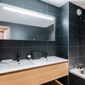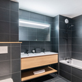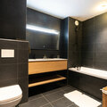 Bathroom 1: Bathtub, Double hand basin, Hairdryer, Towel dryer, and Toilet