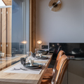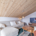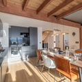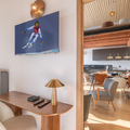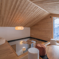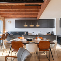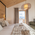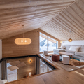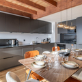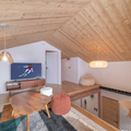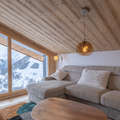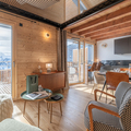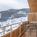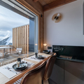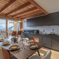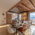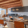 Living area: The living area consists of a large open-plan fitted kitchen, a dining area that can seat up to 10 people, a small lounge, a bar converted into a workspace for two people with mountain views, and a magnificent south-facing terrace.