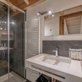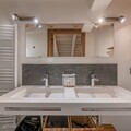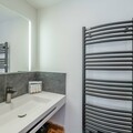 Bathroom 1: Double hand basin, Shower, and Towel dryer