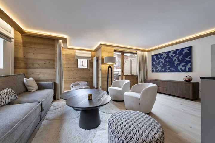 Ideally located in a quiet residential area of Val d’Isère, just 500 metres from the ski slopes, this 120 sqm duplex apartment is set within a high-end residence featuring a swimming pool, sauna, hammam and fitness room. Combining comfort, space and elegance, it boasts a refined interior blending contemporary design with Alpine charm. Accommodating 6 adults and 4 children, it offers a warm and stylish setting for an unforgettable mountain stay.