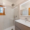 Bathroom 1: Shower, Hairdryer, Towel dryer, and Single hand basin