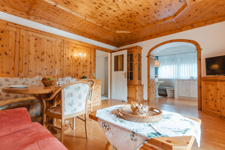 "Schubert-Franz Top 12", 2-room apartment 65 m2 on 3rd floor. Object suitable for 4 adults. Spacious, very cosy furnishings: entrance hall with separate WC. 1 double bedroom with bath/WC and double hand-basin. Exit to the balcony. Living/dining room with 1 double sofabed, dining nook and satellite TV (flat screen). Exit to the balcony. Small kitchen (oven, dishwasher, 4 ceramic glass hob hotplates, toaster, kettle) with dining nook. Wooden floors. The living room is a farmhouse lounge. Balcony 5 m2. Balcony furniture. Beautiful view of the mountains and the resort. Facilities: Internet (WiFi, free). Please note: apartment street side. Non-smokers only. 50403-000319-2020