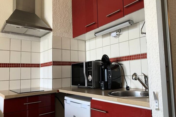 The fully equipped kitchen includes a fridge, 2 ceramic hobs, a microwave grill, and several appliances such as a Tassimo coffee maker, kettle, toaster, raclette machine, and fondue machine. The shower room features an Italian shower and a WC for added comfort. The apartment also includes a ski box for your convenience.