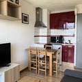 This bright studio, located in a building with an elevator, offers a cozy space for up to 4 people. The studio features a mountain area with 2 bunk beds and a living room with a 2-seater convertible sofa. It is equipped with a large HD TV, a dining area, and access to a south/east-facing balcony that provides a stunning view of the mountains, including the summit of Pain de Sucre. The property is non-smoking and pets are strictly prohibited, ensuring a clean and allergy-friendly environment.