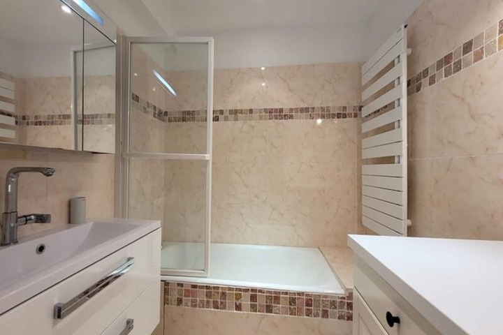 High above the pristine slopes of Pra-Loup 1600, this beautifully renovated apartment offers a warm and inviting retreat for your alpine adventures. With its contemporary style and thoughtful design, this south-west facing gem is bathed in natural light, creating a cozy atmosphere perfect for unwinding after a day in the mountains. Imagine stepping onto your private balcony to soak in the breathtaking views of the surrounding peaks, while the sun sets over the snow-covered landscape. This is not just a place to stay; it’s a haven where comfort meets elegance. \n\nInside, the apartment boasts a spacious 58m² layout designed for up to four guests. The entrance hall welcomes you with built-in wardrobes for convenient storage. The living room, featuring a stylish sofa and flat-screen TV, invites you to relax in modern comfort. The open-plan kitchen is fully equipped with an oven, dishwasher, refrigerator, microwave, and ceramic hob, making it easy to prepare delicious meals. The two bedrooms are thoughtfully furnished: one with two single beds that can be joined into a double, and the other with a cozy double bed. Both rooms include ample storage and soft duvets for restful nights. Two bathrooms—a shower room and a separate one with a bathtub—ensure convenience for all guests, while the separate WC adds extra privacy. \n\nLocated just 80 meters from the shopping arcade, you’ll find everything you need within easy reach, from ski rentals to charming local eateries. The ski locker makes it effortless to gear up for your next adventure, while the slopes beckon right outside your door. Whether you’re here to carve through powdery trails or explore the vibrant summer landscapes, Pra-Loup offers year-round excitement. \n\nChoose this apartment for its blend of style, comfort, and unbeatable location. With parquet flooring, electric shutters, and stunning views, it’s the perfect base for creating unforgettable memories in the French Alps.