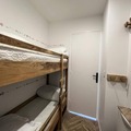 Designed to comfortably accommodate up to four guests, the studio features a smart layout that maximizes space and comfort. The entrance alcove includes two snug bunk beds, while the living room boasts a plush double sofa bed, a dining area, and direct access to the balcony. The fully equipped kitchenette invites you to prepare hearty meals after a day on the slopes, complete with an induction hob, oven, microwave, dishwasher, and even a raclette grill for a true taste of the Alps. Modern amenities like an HD TV, washing machine, and towel warmer ensure a hassle-free stay, while the elegant parquet flooring adds a touch of warmth and sophistication.