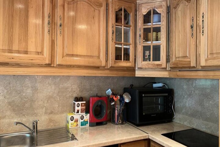 The studio is equipped with a fully functional kitchen, including a 3-burner ceramic hob, oven, microwave, dishwasher, fridge with small freezer, and appliances like a Dolce Gusto coffee maker, kettle, toaster, and raclette grill for a comfortable stay. The modern shower room with a cabin shower and WC ensures your convenience, making this apartment a perfect base for your mountain getaway.