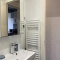 Inside, the studio is equipped with a fully functional kitchen, including a top refrigerator, two ceramic hobs, an oven, and a mini dishwasher. The kitchen also features an extractor hood, a filter coffee maker, a kettle, and a microwave for added convenience. Whether you're preparing a quick meal or a cozy dinner, this kitchen has everything you need. The apartment also includes heating to ensure a comfortable stay during colder months, making it an ideal retreat for both winter and summer stays.