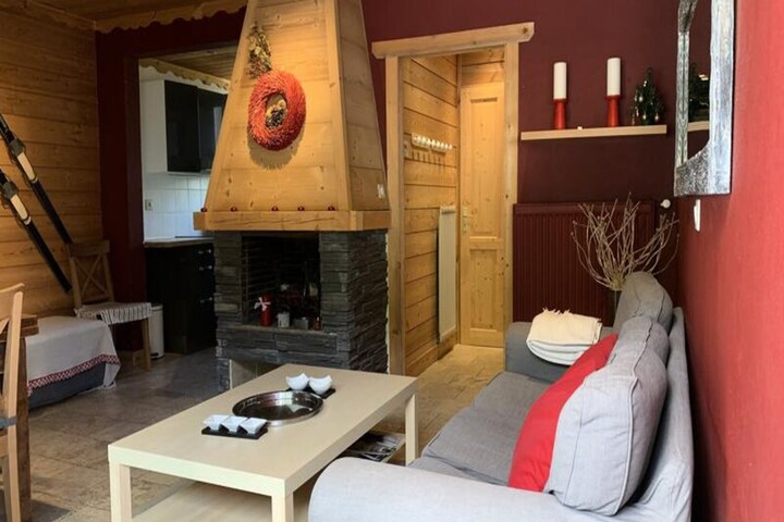 This charming, fully renovated detached house in Pra-Loup offers a comfortable stay for up to 6 people. Located just 80 meters from the Clapiers cable car and 150 meters from the shopping mall, the house is ideally situated for ski enthusiasts. The living area features a cozy sofa, a flat-screen TV, and access to a south-facing balcony with beautiful views. The semi-independent kitchen is well-equipped with a pyrolysis oven, 4 hotplates, a fridge/freezer, dishwasher, microwave, filter coffee maker, and toaster, making it easy to prepare meals at home. The property also includes a washing machine in the hallway cupboard.