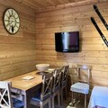 The house consists of three well-appointed bedrooms: one with two single beds, one with a 140 cm double bed, and another with two 90 cm bunk beds. The bathroom has a shower cabin and a double sink, while the WC is separate for added convenience. With plenty of storage space in each room, you’ll feel right at home. Pets are not allowed, and the chalet is non-smoking, ensuring a clean and healthy environment for all guests.