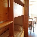 This charming 42m² 2-room apartment accommodates up to 6 people and is perfect for both winter and summer stays. Located on the 3rd floor of a building directly on the slopes, the apartment offers a cozy, renovated interior with a south-facing balcony that overlooks the slopes and Pain de Sucre. The living area includes a 2-seater sofa bed, an HD TV, a dining area, and access to the balcony. A wooden corridor leads to the bedroom with two single beds that form a large double bed and ample storage space.
