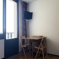 This cozy studio apartment, located in Building "C" with elevator access, comfortably accommodates up to 4 guests. Situated on the 10th floor, the apartment offers a charming west-facing balcony with stunning views of the valley and surrounding mountains. The sleeping area includes two bunk beds, each with a duvet, while the living room features a two-seater sofa bed, a flat-screen TV, and access to the balcony. The apartment is pet-free and non-smoking, ensuring a clean and comfortable environment for all guests.