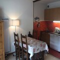 The kitchen area is fully equipped with a refrigerator, dishwasher, oven, microwave, and 4 induction hobs, making meal preparation easy. Additional amenities include a ski locker, a TV in the living room, and the option to rent bed and bath linen, as well as other equipment like a raclette machine or Wi-Fi, subject to availability.