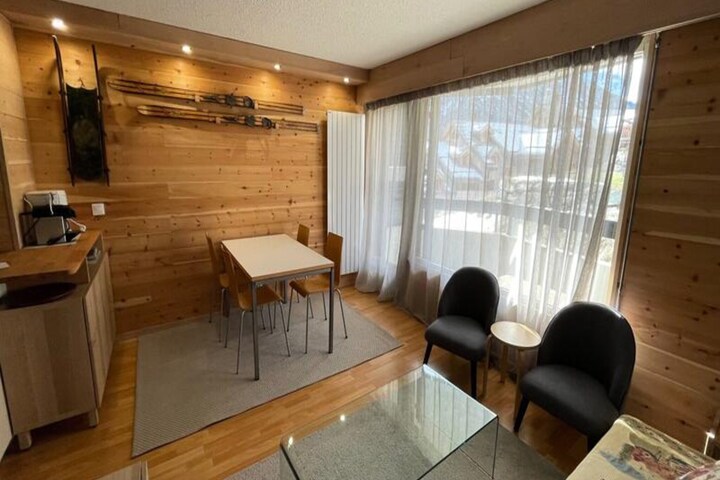 This renovated and bright studio apartment (34m²) comfortably accommodates up to 5 people. It features a variety of sleeping options, including a cabin room with a double bed, a living room with a new 160 cm Rapido sofa bed, and a mountain corner with a single bed. The apartment is non-smoking and pets are allowed. Please note, bed linens and towels are not provided, and an end-of-stay cleaning service is optional. Guests are welcome to enjoy the private parking and ski locker provided with the residence.