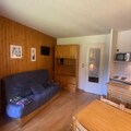 This 40m² apartment is ideal for up to 6 guests, featuring a double bed in the bedroom, two bunk beds in a mountain corner, and a convertible sofa in the living room. It is pet-friendly, with an additional charge. The apartment offers a ski-in/ski-out location, directly connected to the slopes, and is a non-smoking property. Bed linens, towels, and end-of-stay cleaning are not included but are available for rent.