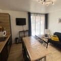 This cozy apartment, located in a quiet residence just steps from the slopes and shops, offers a mezzanine bed, a sofa bed, and a BZ sofa, accommodating up to six guests. It is a non-smoking, pet-free property, ensuring a peaceful atmosphere. The apartment includes a large wardrobe, storage space, electric towel dryers, and a hairdryer. Bed linen and towels are not provided but can be rented upon request.