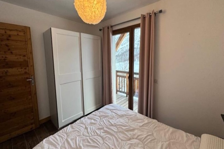 Step inside this 50m² apartment and be greeted by a warm and inviting ambiance. The living room, adorned with mountain-style wooden furniture, features a comfortable corner sofa, a flat-screen TV, and direct access to the balcony through a large bay window. The fully equipped kitchen, complete with modern appliances like a dishwasher, induction hob, and oven, makes preparing meals a breeze. The apartment comfortably accommodates up to four guests, with a master bedroom featuring a plush double bed and a second room with bunk beds. A spacious walk-in shower, a washing machine, and thoughtful storage solutions add to the convenience.