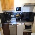 The 38m² studio is thoughtfully designed to maximize comfort and functionality. The living room features a comfortable sofa bed and entertainment options including a TV and DVD player. A separate box corner and alcove with bunk beds provide additional sleeping arrangements, making it ideal for families or groups of friends. The kitchenette is fully equipped with modern appliances, including a fridge, oven, microwave, and dishwasher, ensuring you have everything needed to prepare hearty meals after a day of exploring. The bathroom includes a shower and toilet, and durable bed linen is included during winter rentals for added convenience.