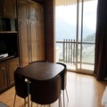 The 23m² studio is thoughtfully designed to maximize comfort and functionality. The entrance features a mountain corner with a bunk bed, while the living room includes a convenient double Murphy bed that folds away to create more space during the day. The kitchenette is fully equipped with modern appliances, including a fridge, microwave, dishwasher, oven, and two electric hobs, making it easy to prepare meals after a day of adventure. Additional amenities include a TV, DVD player, a bathroom with a shower and washing machine, and a ski locker for your convenience.