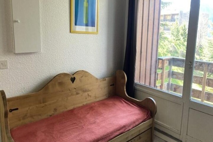 This spacious two-room cabin is perfect for up to 8 people and spans 45m². Located on the 6th floor with elevator access, it offers convenient proximity to the ski slopes, with direct access from the 7th floor or ground level. The bedroom features a double bed and 2-person bunk beds, while the mountain corner provides additional bunk beds for 2. The living room includes a clic-clac sofa bed for extra sleeping space. The apartment is non-pet-friendly, ensuring a quiet, relaxing environment for all guests.