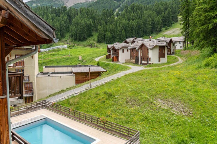 This 30 m² apartment, designed for 4 people, is only a short walk from the resort's main square. It features a modern and welcoming design, with a living room equipped with a sofa bed (converts to a double bed), a wall-mounted television, and board games for entertainment. The fully equipped kitchen includes a dishwasher, refrigerator, microwave, filter coffee maker, and a 4-burner hob, with a dining area for 4 guests. The living room opens onto a furnished balcony offering a beautiful view of the resort, the larch forest, and surrounding mountains.