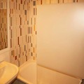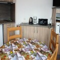 Inside, you'll find a thoughtfully designed space with laminate flooring throughout. The entrance hall features two single bunk beds, perfect for children or friends, while the living room boasts a comfortable double sofa bed for restful nights. The open-plan kitchenette is equipped for preparing meals after a day of exploration, and the bathroom and separate WC ensure convenience for all guests. The apartment's layout maximizes comfort and functionality, making it ideal for both short and extended stays.