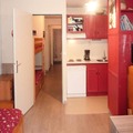 Designed to accommodate up to six guests, the apartment features a thoughtful layout that maximizes both space and functionality. The entrance hall is equipped with two single bunk beds, while the living room offers two single pull-out beds for added flexibility. A separate bedroom includes a double sofa bed and a single mezzanine bed, providing options for families or groups of friends. The kitchenette is fully equipped with a dishwasher, making meal preparation a breeze, and the property includes both a shower room and a bathroom, along with a separate toilet for added convenience.