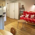 High above the lively heart of the resort, this beautifully renovated studio apartment offers a cozy retreat with ski-in/ski-out convenience for an unforgettable alpine getaway. Located on the fifth floor of a modern residence, the property combines comfort and practicality, making it ideal for couples or small families seeking a serene yet central base for their mountain adventures. Imagine stepping out onto your south-facing balcony, where the sun bathes the slopes and the resort below in golden light, creating the perfect backdrop for your morning coffee or après-ski relaxation. \n\nDesigned to accommodate up to four guests, the apartment features a sleeping alcove with two single bunk beds and a living area with a comfortable double sofa bed. The open-plan kitchen is fully equipped, including a dishwasher, ensuring easy meal preparation after a day on the slopes. A modern bathroom and separate toilet add to the convenience, while the building’s elevator provides effortless access to your alpine haven. \n\nSituated just steps from the resort center, you’ll find everything you need within easy reach. From ski schools and rental shops to charming cafes and restaurants, the vibrant atmosphere of the village invites you to explore its many delights. Families will appreciate the nearby daycare center, making this property particularly appealing for those traveling with young children. \n\nWhether you’re here to carve through pristine powder, soak up the sun on scenic trails, or simply unwind in the fresh mountain air, this studio apartment offers the perfect blend of comfort, location, and alpine charm. Let the beauty of the French Alps inspire your next adventure.