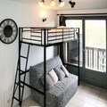 Step inside to discover a thoughtfully designed living space featuring a comfortable double sofa bed and a unique single mezzanine bed, perfect for a restful night's sleep. The open-plan kitchenette is equipped with all the essentials, making it easy to prepare your favorite meals after a day of adventure. The modern shower room with WC ensures convenience and comfort, while the studio’s warm ambiance creates a welcoming atmosphere.
