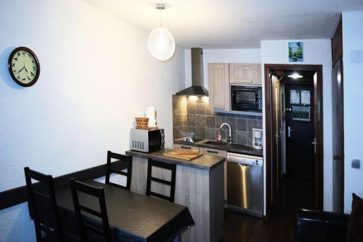 Amidst the vibrant energy of the French Alps, this charming studio apartment offers a cozy retreat with breathtaking views of the slopes. Perfectly situated in the heart of the resort, it invites you to immerse yourself in the alpine lifestyle, with ski lifts and shops conveniently located at the foot of the building. Whether you’re seeking thrilling days on the pistes or tranquil evenings soaking in the mountain atmosphere, this residence is your gateway to unforgettable moments. \n\nDesigned for up to four guests, the studio is both bright and functional, featuring a comfortable living room with a double sofa bed, a well-equipped kitchenette complete with a refrigerator and dishwasher, and a sleeping alcove with two single bunk beds. The bathroom and separate toilet ensure privacy and convenience, while the balcony provides an idyllic spot to admire the snowy slopes and enjoy the crisp mountain air. A ski locker is included, making it easy to store your equipment after a day of adventure. \n\nThe location is unbeatable, with ski lifts just steps away for effortless access to the slopes. Nearby, you’ll find a variety of shops, restaurants, and après-ski options to enhance your stay. In summer, the area transforms into a haven for hikers and nature enthusiasts, offering trails that wind through stunning alpine landscapes. Explore the charm of local villages, savor regional specialties, and discover the beauty of the surrounding mountains. \n\nWhether you’re visiting for winter sports or summer escapes, this studio apartment combines comfort, convenience, and the magic of the Alps, promising a holiday filled with cherished memories.
