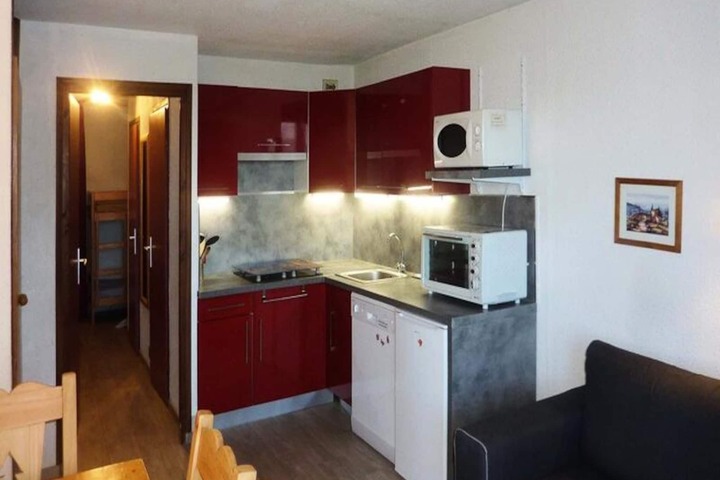 In the heart of the French Alps, where the crisp mountain air invigorates the soul, this charming studio apartment offers a cozy retreat for up to six guests. Located in the Le Cairn residence, this property is perfectly positioned for those who dream of stepping directly onto the slopes each morning. Whether you're here to carve through fresh powder in winter or explore the lush alpine trails in summer, this studio is your gateway to unforgettable adventures. From its west-facing balcony, soak in breathtaking views of the valley as the sun sets behind the peaks, painting the sky in hues of gold and pink.
