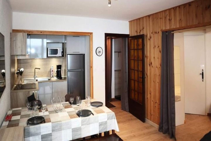 High above the bustling shopping center and directly facing the slopes, this beautifully renovated two-room apartment offers a seamless ski-in/ski-out experience in the heart of the French Alps. Imagine stepping out onto your spacious balcony each morning, coffee in hand, as you take in the breathtaking views of the snowy slopes and the lively resort below. With its prime location and modern amenities, this retreat promises both convenience and comfort for your alpine getaway.
