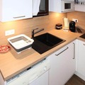 Designed to comfortably accommodate up to four guests, the apartment features a thoughtfully arranged layout. A sleeping alcove with two single bunk beds offers a cozy nook for restful nights, while the living room includes a sofa bed with two pull-out singles that can be joined for added flexibility. The open-plan kitchen is fully equipped, allowing you to prepare hearty meals after a day of adventure. A modern bathroom and separate WC add to the convenience, ensuring a comfortable stay for families or small groups.