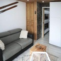 Designed to comfortably accommodate up to five guests, the apartment features a thoughtful layout that maximizes space and comfort. The entrance hall leads to a cozy sleeping alcove with three single bunk beds, ideal for families or groups of friends. The living room, complete with a double sofa bed, is a welcoming space to relax after a day of adventure. The open-plan kitchen is fully equipped, allowing you to prepare hearty meals to enjoy together. Modern amenities, including a shower room with a washing machine and a dedicated ski locker at the entrance of the residence, ensure a hassle-free stay.