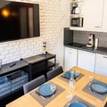 High above the serene slopes of Les Orres 1800, this charming alpine apartment offers a cozy retreat for those seeking adventure and tranquility in equal measure. Imagine waking up to the crisp mountain air and the golden hues of a southwest-facing balcony, where every moment feels like a postcard-perfect escape. Recently renovated with a touch of modern elegance, this 27m² gem combines the warmth of a chalet with the convenience of contemporary living, making it an ideal choice for couples, families, or small groups. \n\nStep inside to discover a thoughtfully designed space featuring a spacious living room with a smart TV and an electric fireplace, perfect for unwinding after a day on the slopes. The fully equipped kitchen invites culinary creativity, while the separate bedroom doubles as a second living area, complete with its own sofa and TV for added privacy. With comfortable bedding, including a mezzanine double bed and two sofa beds, this apartment accommodates up to four guests with ease. Essential amenities such as Wi-Fi, a dishwasher, and a raclette grill ensure a seamless holiday experience. \n\nLocated just 150 meters from shops, restaurants, and ski lifts, the residence offers unparalleled ski-in/ski-out access, making it a haven for winter sports enthusiasts. In summer, the surrounding trails beckon hikers and mountain bikers to explore the breathtaking landscapes of the Hautes-Alpes. Guests also enjoy access to a heated indoor pool at the neighboring residence, adding a touch of luxury to their stay. \n\nWhether you’re carving through fresh powder or soaking in the alpine sunshine, this apartment is your gateway to the magic of Les Orres 1800. Create unforgettable memories in a destination where every season brings its own charm.