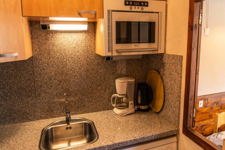 High above the picturesque Embrun valley, this charming studio apartment in the heart of Les Orres 1650 invites you to experience the perfect alpine getaway. With its southwest-facing balcony, you’ll wake up to breathtaking panoramic views of the surrounding mountains and bask in the sunshine that graces the Hautes-Alpes almost daily. Whether you’re sipping coffee or enjoying a good book, the tranquil beauty of this setting will leave you refreshed and inspired. \n\nInside, the 30m² studio is thoughtfully designed to accommodate up to four guests. The sleeping alcove offers a cozy bunk bed, while the living area features a pull-out sofa bed and an additional single sofa bed, ensuring flexibility and comfort for families or small groups. The fully equipped kitchen, complete with a dishwasher, microwave/grill, and all the essentials, makes it easy to prepare meals after a day of adventure. The bathroom, with its inviting bathtub, is perfect for unwinding, and a washing machine adds convenience to your stay. \n\nStep outside, and you’re just moments from the snow front and chairlifts, thanks to the residence’s unique 19-meter-high walkway. After a day on the slopes, relax by the cozy fireplace in the shared lounge or challenge friends to a game of billiards. The solarium offers a serene spot to soak up the alpine sun, while the private ski locker ensures your gear is always ready for the next adventure. \n\nWith shops, restaurants, and activities like mountain biking, zip-lining, and treetop courses all within 100 meters, this residence combines convenience with the charm of a historic alpine resort. Whether you’re here for snow sports or summer hikes, this is your gateway to unforgettable memories in the heart of the Hautes-Alpes.