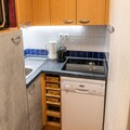 This 33 m² 2-room apartment comfortably accommodates up to 6 guests. It includes a bedroom with two single beds (which can be combined into a double), a mountain corner with bunk beds, and a double sofa bed in the living room. The apartment also features a fully equipped kitchen with a raclette machine, dishwasher, toaster, and kettle, making it perfect for preparing meals during your stay. A closed terrace with a gate provides ideal storage for bikes, and the bathroom includes a bathtub for relaxing after a day of activities.