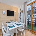 This thoughtfully designed 24 m² studio apartment accommodates up to four guests, making it ideal for small families or couples. The warm and inviting interior features a recently updated double sofa bed in the living area, two single bunk beds in the entrance hall, and a fully equipped kitchen for preparing hearty meals after a day on the slopes. The west-facing balcony is a delightful spot to enjoy your morning coffee or evening aperitifs while soaking in the tranquil alpine views. Additional amenities include a private ski locker and access to the residence’s heated indoor pool, complete with a whirlpool and outdoor terrace—a true oasis for relaxation in any season.
