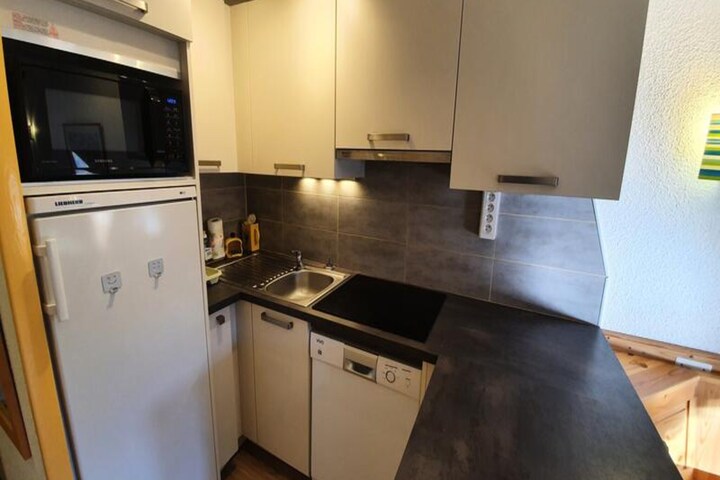 High above the picturesque Embrun valley, this charming studio apartment in Les Orres 1650 invites you to experience the magic of the Hautes-Alpes. Imagine waking up to breathtaking panoramic views of the surrounding mountains, stepping onto your sunny southwest-facing balcony with a warm cup of coffee, and soaking in the crisp alpine air. With its prime location in the heart of the resort, adventure is just steps away, whether it's skiing down pristine slopes, exploring scenic trails, or enjoying the vibrant village atmosphere. \n\nThis thoughtfully designed 30 m² studio comfortably accommodates up to four guests, making it perfect for couples, small families, or friends seeking a cozy retreat. The newly renovated kitchen is equipped with modern amenities, including a dishwasher, raclette grill, fondue set, and barbecue grill, ensuring memorable evenings filled with delicious meals and laughter. Sleeping arrangements include two double sofa beds and a bunk bed, ideal for children. After a day of adventure, unwind in the renovated bathroom featuring a relaxing bathtub, or make use of the washing machine and hairdryer for added convenience. \n\nLes Orres 1650 offers everything you need for a stress-free holiday. The snow front and chairlifts are just a short stroll away via the impressive 19-meter-high walkway, while shops, restaurants, and activities like mountain biking, zip-lining, and treetop adventures are all within 100 meters. A private ski locker ensures your equipment is safely stored, and pets are welcome for an additional charge. \n\nWhether you're here for the thrill of winter sports or the serenity of summer hikes, this studio apartment is your gateway to unforgettable alpine moments. Let the sunshine and charm of the Hautes-Alpes create memories that will last a lifetime.