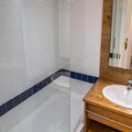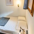 Property along with its ideal location offers a delightful and convenient stay for up to 4 guests. This 33 m² apartment, situated on the ground floor, features a warm, inviting atmosphere with stone and wood decor. It includes a bedroom with a double bed and a separate sleeping area with two single bunk beds (90 x 190 cm). The living room, equipped with a sofa, television, and electric fireplace, leads to a balcony facing east with stunning views of the surrounding mountains. The apartment also provides a fully equipped kitchen with modern amenities such as a dishwasher, electric hob, microwave, toaster, and Nespresso coffee maker. Additional amenities include a bathroom with a bathtub and a separate toilet, along with a private ski box for equipment storage.