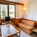 The apartment features a fully equipped kitchen designed for easy meal preparation, including a dishwasher, oven, and specialty equipment such as a fondue and raclette machine—perfect for cozy evenings with family or friends. The spacious living area is designed for relaxation, with a comfortable sofa and a fireplace for added ambiance. The recently renovated bathroom includes a bathtub for a relaxing retreat after outdoor activities. A private ski locker is available to securely store ski gear, ensuring a hassle-free experience for those eager to hit the slopes.